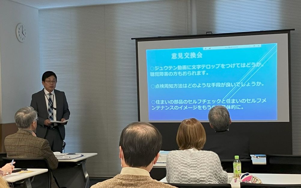 研修後半では、住宅部品の経年劣化とお手入れの重要性を理解いただくため、事故事例や発火の画像を紹介、日ごろのお手入れが未然に事故を防ぐ対策として有効である点を説明しました。また、ALIAが制作した住宅部品点検ツールや動画を、NACSの皆様より消費者との相談時に活用いただけるようにお伝えしました。意見交換では参加者から点検ツールなどについて消費者目線で貴重なご意見や提言を頂きました。